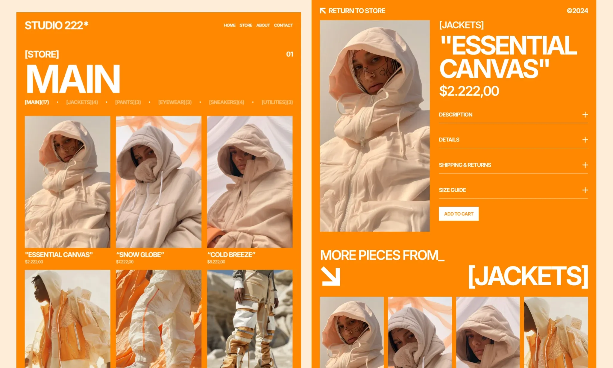 The challenge of the project was to create a template that would be both highly intuitive and deeply conceptual, aiming to revolutionize the streetwear and e-commerce market not only through its visual design but also through the proposal of regenerative clothing that supports nature without consuming unsustainable materials.